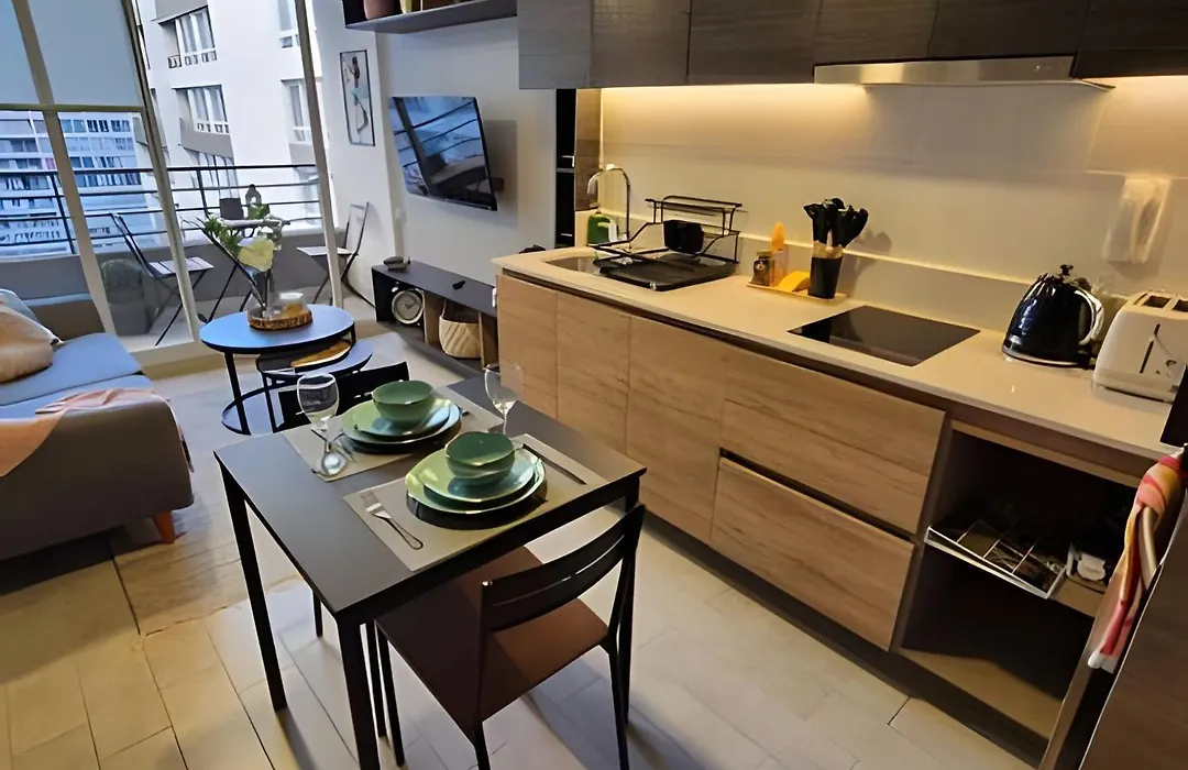 Santiago Centro Depto 1D1B Lujo, Metro, Wifi, Hermosamente Decorado apartment includes a dressing area and a kitchen, complete with wardrobes and modern conveniences such as a flat screen TV. Visitors will enjoy the comfort of a bathroom with a hairdryer in this apartment.